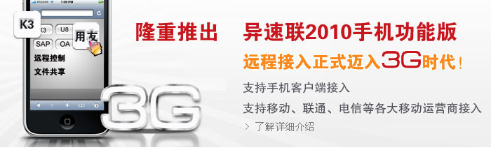 異速聯(lián)2010版為移動辦公帶來了質(zhì)的變革,它開創(chuàng)了國內(nèi)遠程接入及應(yīng)用交付應(yīng)用的先河,在PC、筆記本的基礎(chǔ)上率先實現(xiàn)了手機客戶端的接入功能,確保用戶隨時隨地通過手機客戶端遠程登陸、執(zhí)行應(yīng)用程序。