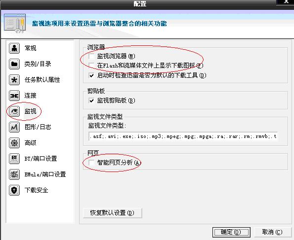 一種原因是沒有安裝異速聯(lián)客戶端插件。如果安裝后,仍舊提示下載文件,是因為該機器上安裝有例如迅雷,網(wǎng)際快車,超級旋風(fēng)等下載工具。打開下載工具的設(shè)置頁面,關(guān)閉“監(jiān)視”選項中的如下功能即可。