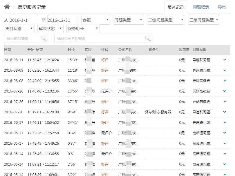 圖二:統(tǒng)計(jì)和導(dǎo)出每個(gè)客戶的歷史服務(wù)記錄